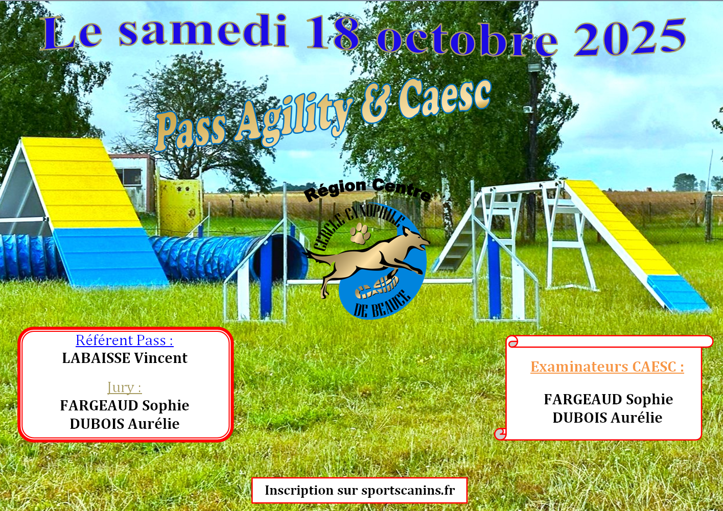 Samedi matin se sont tenus les examens Pass Agility et CAESC sous la responsabilité d'un référent Pass Vincent LABAISSE assisté de deux moniteurs d'agility Sophie FARGEAUD et Aurélie DUBOIS-ARRIGHI. sur les 11 participants Pass , 9 d'entre eux l'ont obtenu dont 2 du club Vanessa DAGUSE et Anthony MELO. Quant au CAESC il y eu 6 participants tous reçu. Félicitation à eux et un grand merci aux examinateurs ainsi qu'aux bénévoles du club